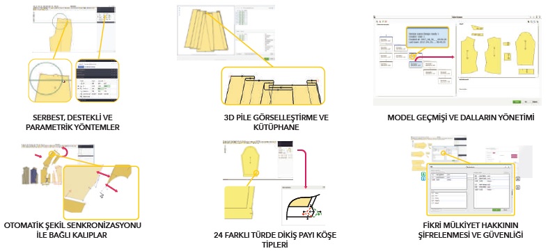 Gemini CAD, dijital çalışma alanında manuel kalıp yapma/geliştirme rahatlığını bezier eğrisi şekli ve köşe açısı kontrolü ile sunan ilk yazılımdır ve bu geometrik platformu daha da geliştirerek kalıp üzerinde serbest parça hareketi, döndürme, kalıp aynalama yapabilme özelliklerini korurken